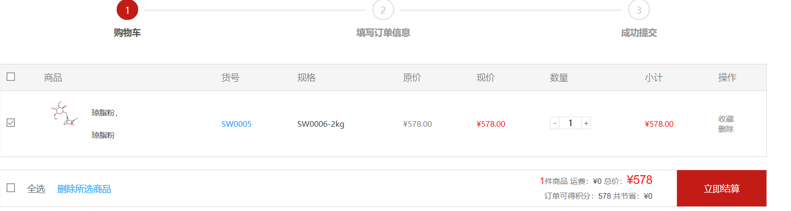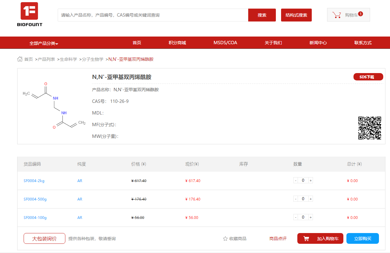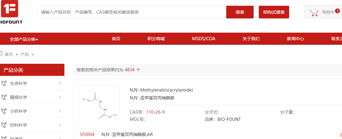 1. 在搜索框輸入產品名稱/CAS/產品編號