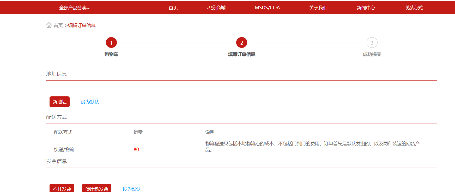 4. 填寫發貨地址,發票信息
