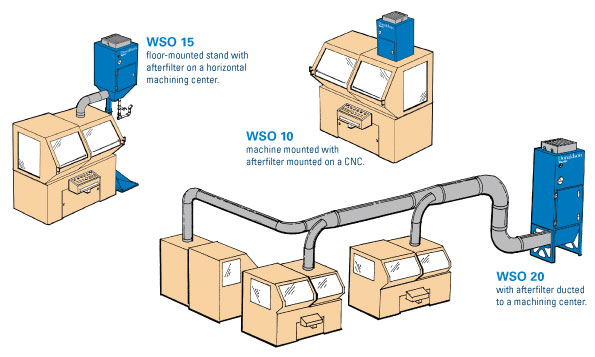 WSO油霧過(guò)濾器可以滿(mǎn)足各種設(shè)備的配置要求:可安裝在機(jī)頂上、地面上或連接中央管道系統(tǒng)。